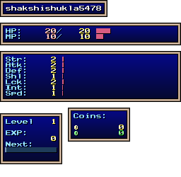 | EXP | Level: 1 EXP: 0 (for next level: 11) |